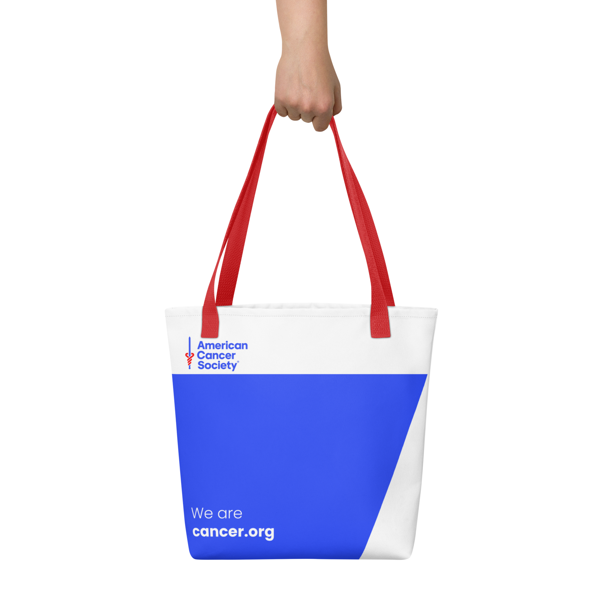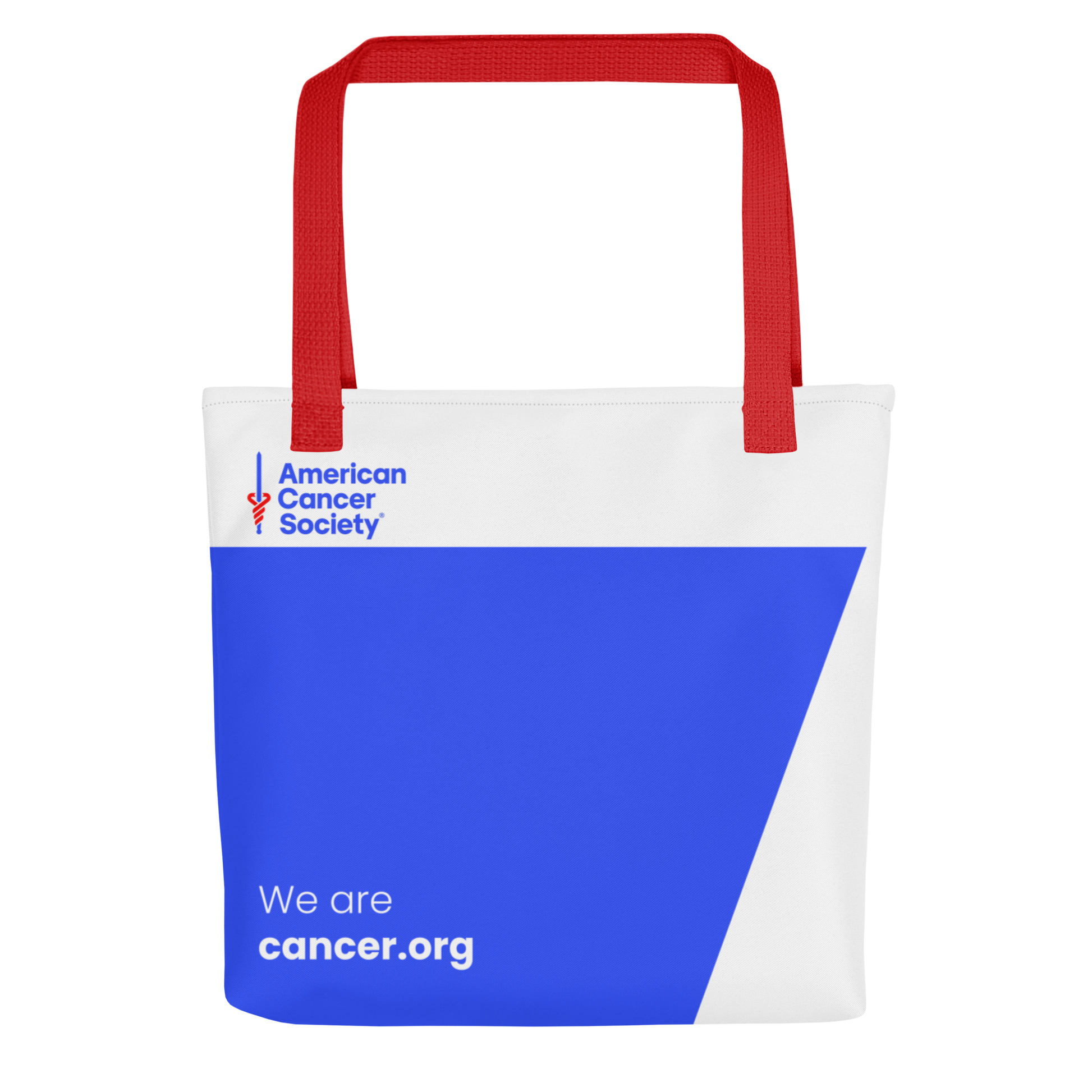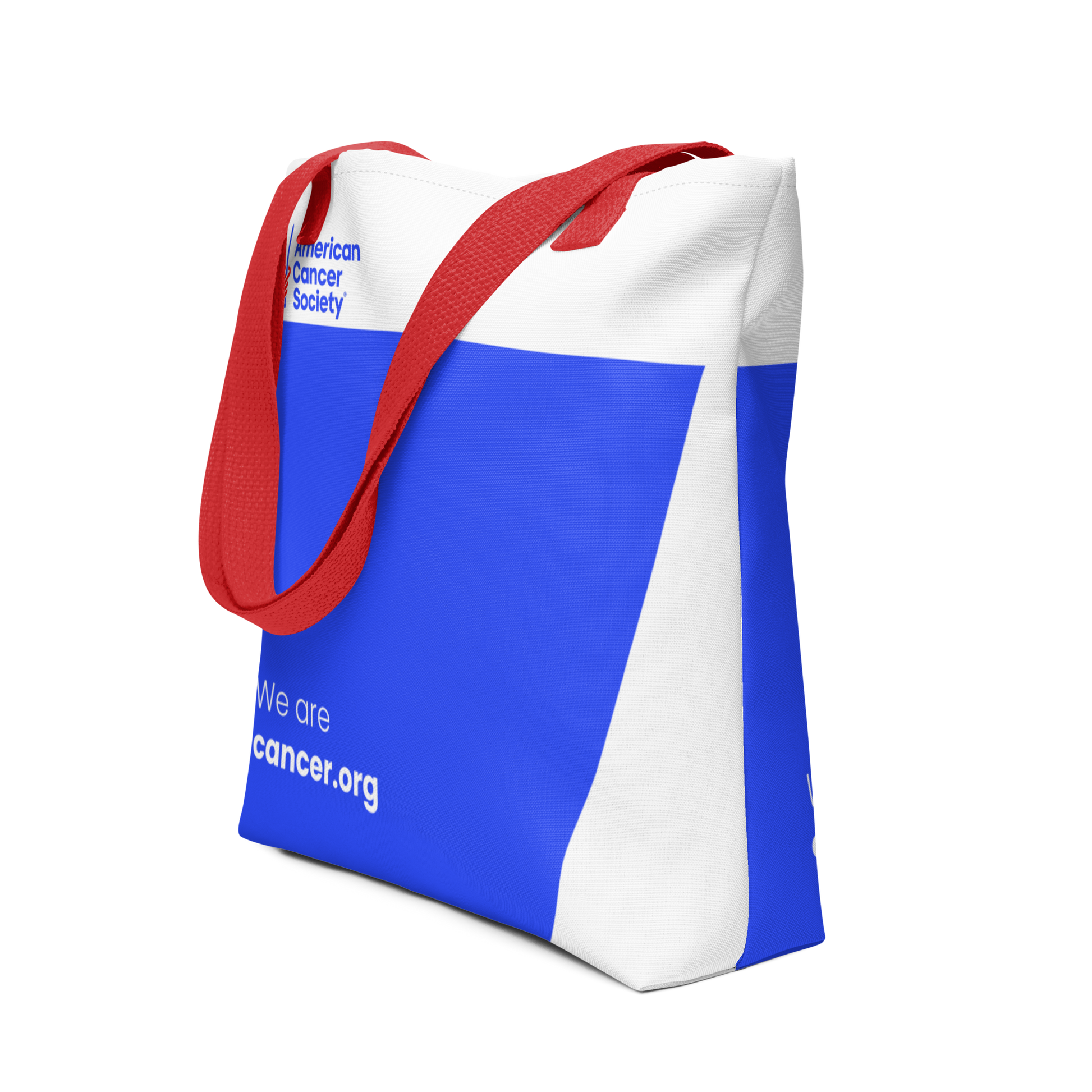 Make a statement with the American Cancer Society Trapezoid Bold Tote Bag—featuring a striking blue trapezoid design that reflects strength, movement, and purpose. Durable, spacious, and mission-driven, it's the perfect everyday carry that supports the fight against cancer.